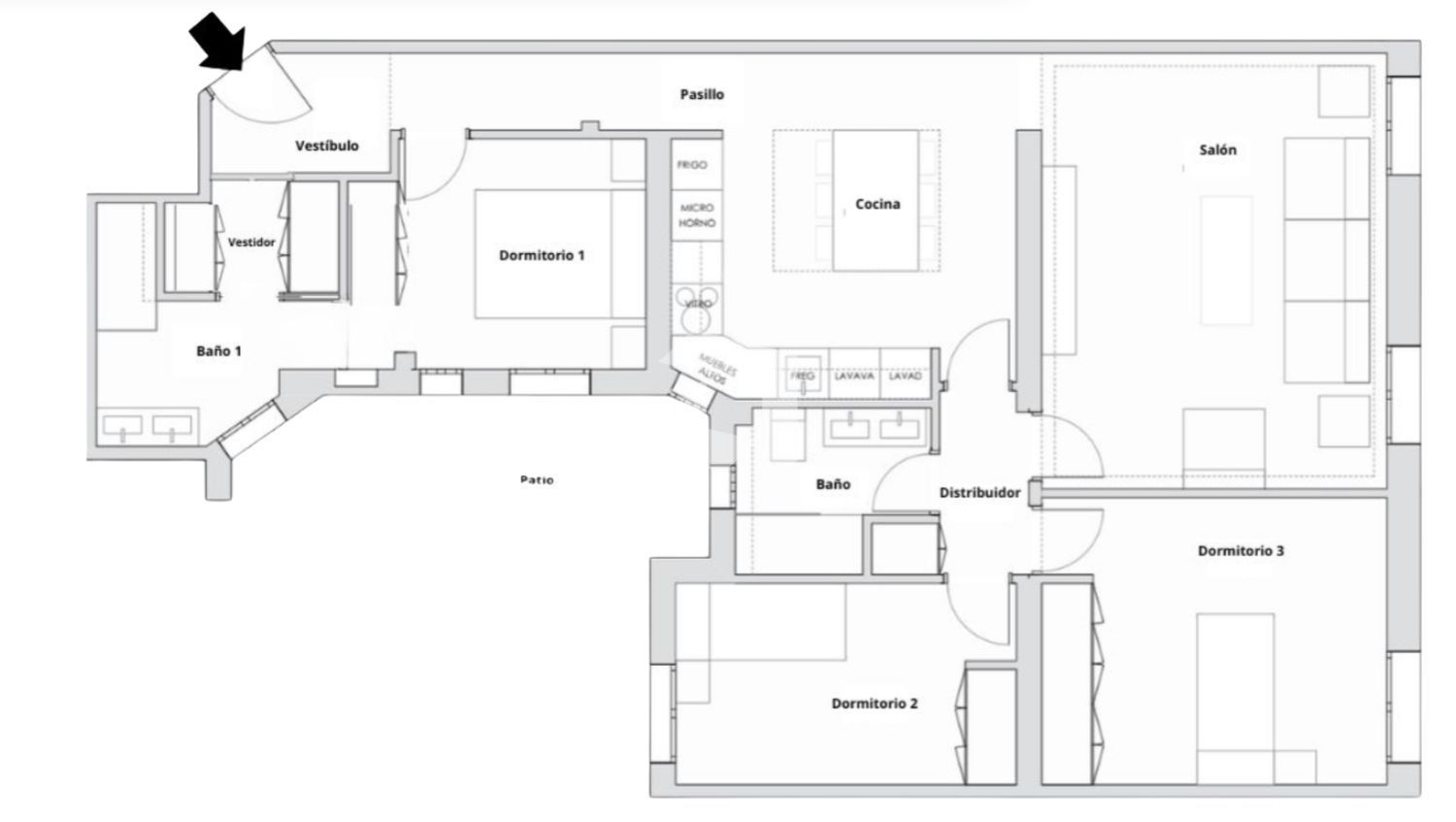 Flat for sale in Madrid, with 1,302 ft2, 3 rooms and 2 bathrooms, Lift, Air conditioning and Heating Gas.