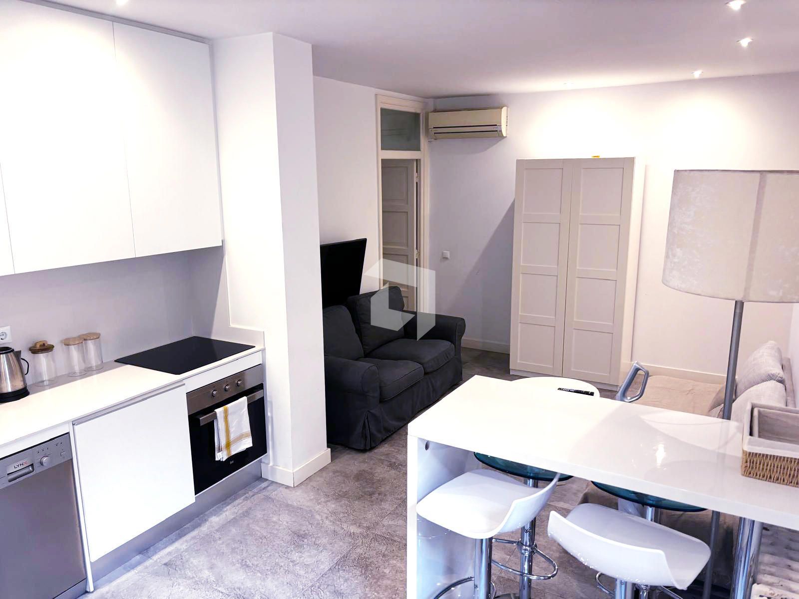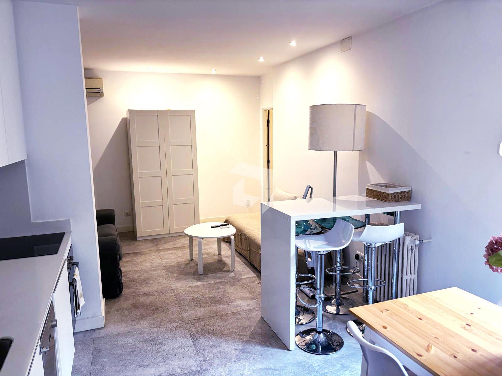 Situado en una cuarta planta sin ascensor, se trata de un apartamento completo, con cocina totalmente equipada integrada en el salón/comedor con bastante luz, Dispone de un baño completo y un dormitorio doble independiente.