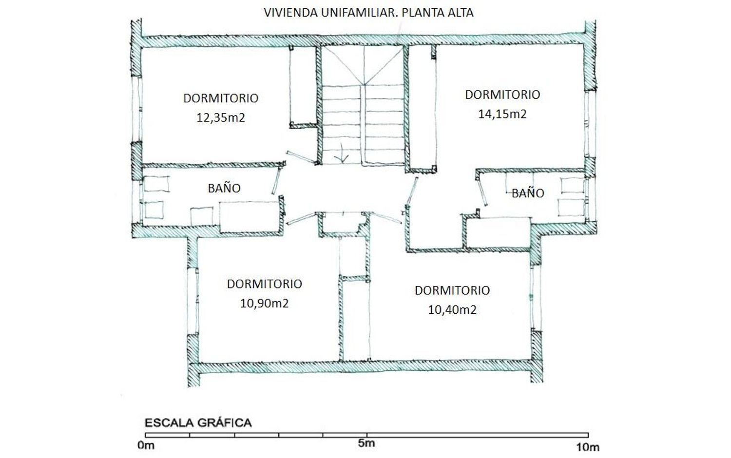 La primera planta dispone de un distribuidor con armario empotrado, cuatro dormitorios uno de ellos con baño en suite y otro baño completo que da servicio a las otras habitaciones.