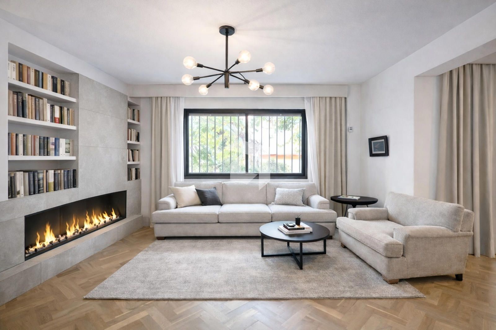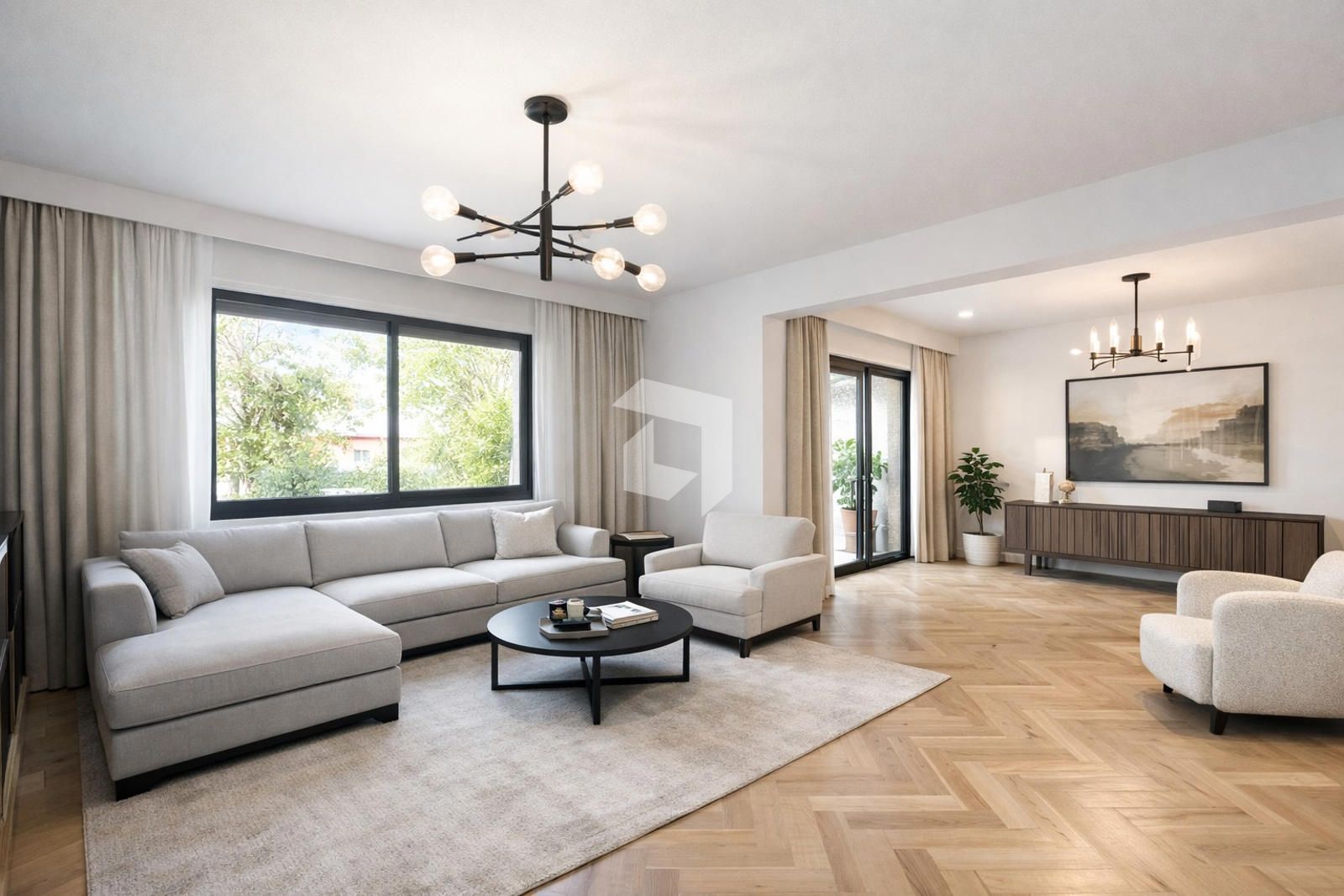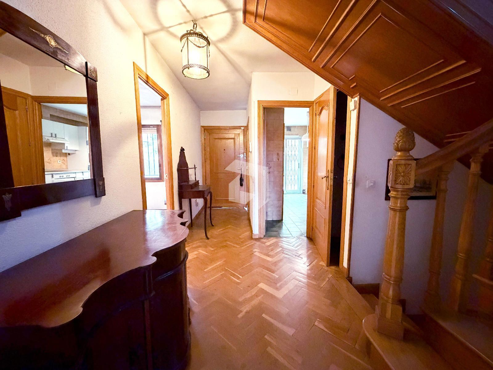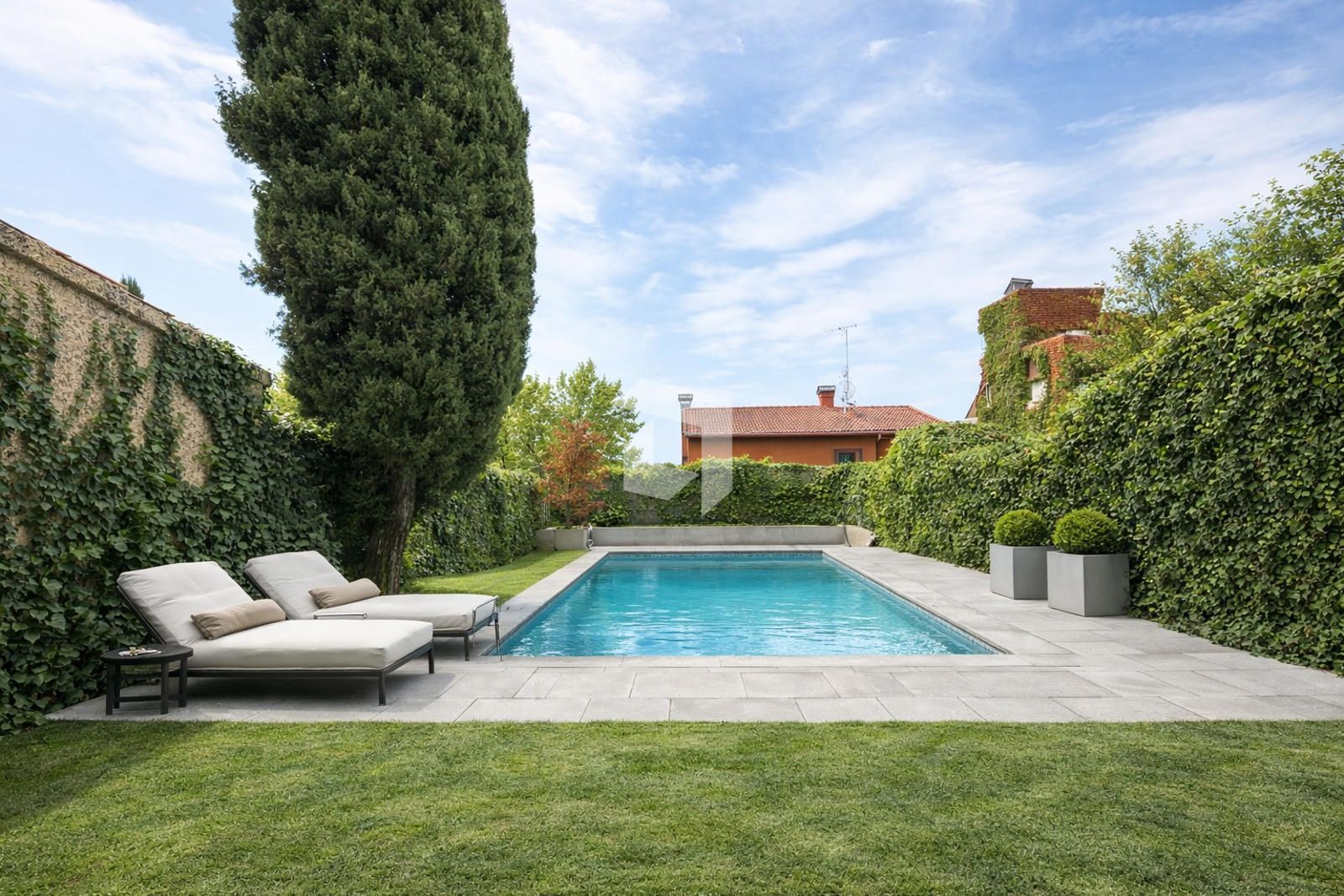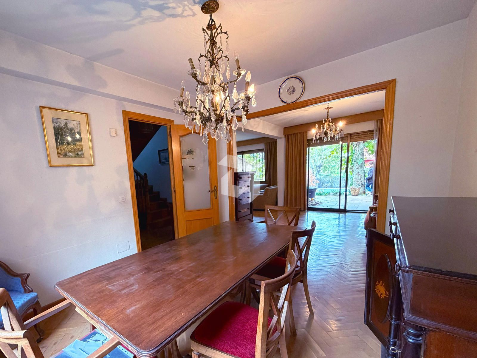En la planta baja, nos encontramos con un amplio hall de entrada, aseo de cortesía, cocina independiente y un salón comedor con grandes ventanales y acceso directo al jardín con piscina privada.