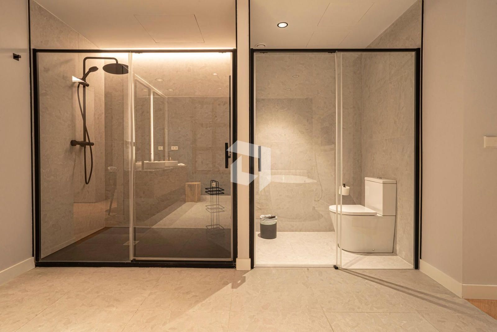 El área de descanso consta de tres dormitorios con armarios empotrados, un espectacular vestidor en el dormitorio principal y dos baños completos. Además de una zona de lavandería independiente.