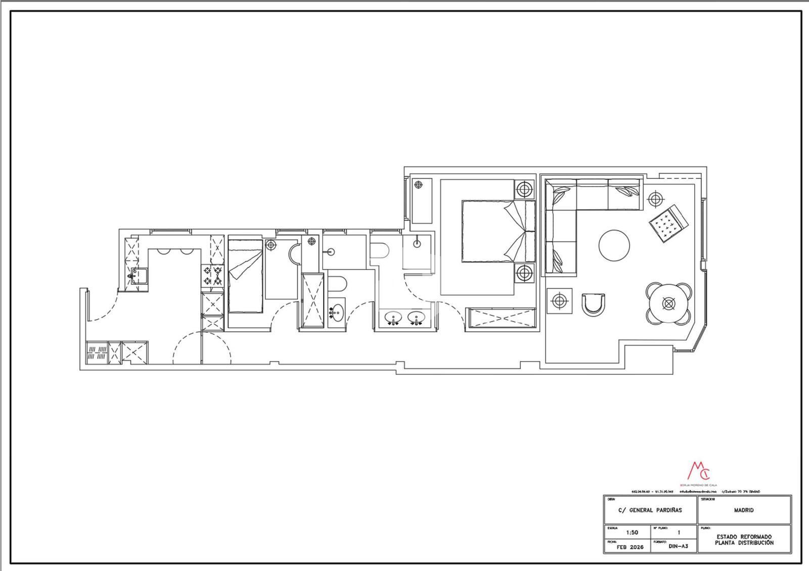 Con 80 m², la vivienda se distribuye a través de un recibidor que da acceso a un salón-comedor luminoso. Dispone de dos dormitorios, destacando el principal con baño en suite, además de un segundo baño completo que da servicio al otro dormitorio y a las visitas.